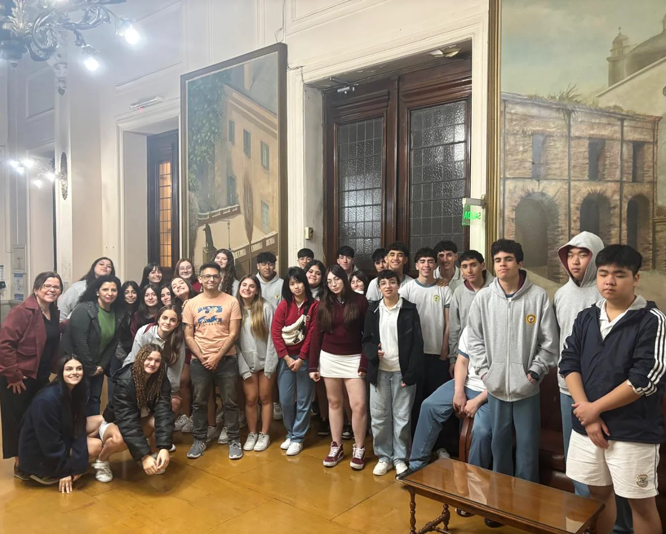 Los chicos concurrieron acompañados por profesor de la asignatura, el Dr. Santiago Charif, la rectora prof. Lic. Andrea Wolanski y la bibliotecaria Romina Zárate.